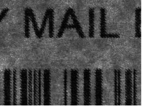 Table 1 features images taken with fixed focal length lenses and illuminated with a backlight. It is evident from the images that a backlight is ideal for creating a silhouette of an object. This is great for objects that are not transparent like the cap (Panel B), gear (Panel D) and PCB board (Panel E). The text on the shipping label (Panel C) cannot be detected with this type of illumination geometry, making it a poor choice for optical character recognition (OCR) applications. When imaging transparent glass objects like the medicine vial in Panel A, a backlight can be used to look at liquid levels or placement of the label. Overall, this type of illumination is ideal for edge detection or part verification, since it creates a clear difference in gray level intensity between object and background.