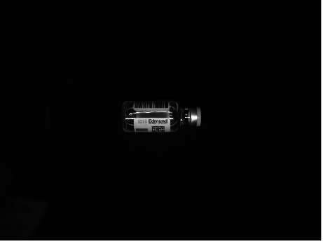 The images in Table 2 were taken with the same camera and lens setup as before, except that a bar light was used to produce the partial brightfield illumination. The illumination effect of the bar light is similar to the spot light, as seen in the similarity of the above images with the previous images taken with the spot light. The wide shape of the bar light makes it easier to light larger objects like the label (Panel C). However, it also makes it more challenging to image reflective areas without creating hotspots from scratches or digs. The bar light also creates a different glare pattern which is evident on the medicine vial bottle (Panel A).